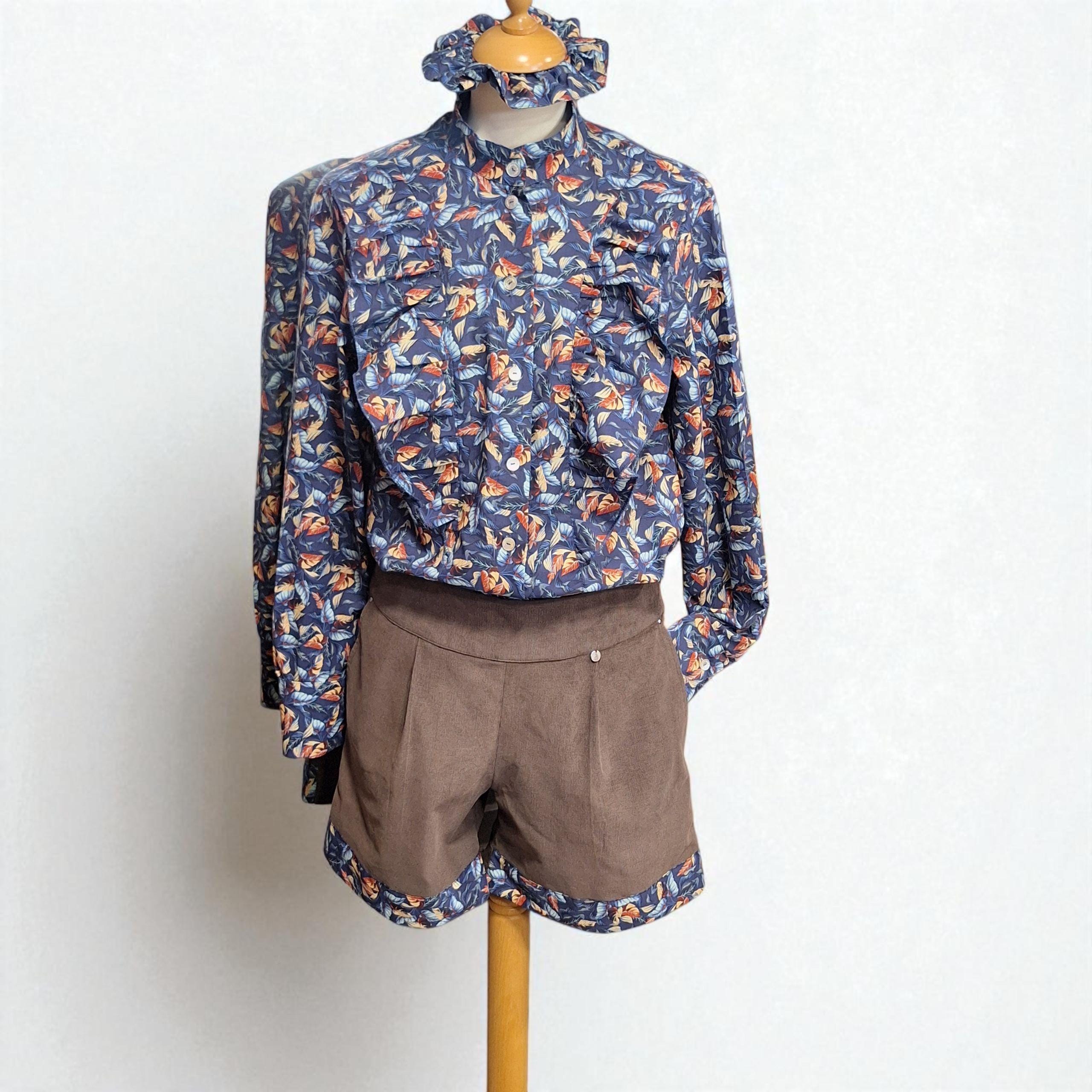 Swallow Set – Shirt and Shorts in Earth Tones with Tropical Leaf Pattern